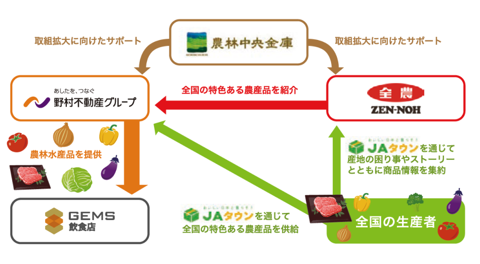 全国の特色ある農産物を都市型施設GEMSなどで紹介し、消費拡大と地域活性化を推進します。